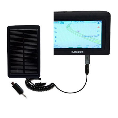 Solar Powered Rechargeable External Battery Pocket Charger for the Amcor 3900 - uses Gomadic TipExchange Technology Feature